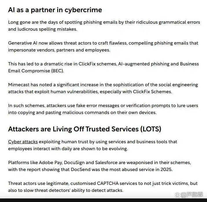 关键词:生成式AI;钓鱼攻击;ClickFix;邮件安全;行为分析;品牌伪装;OAuth滥用;人机协同防御