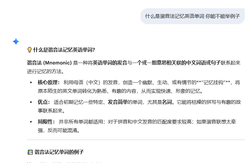 就像这个谐音记忆工具,我实际使用下来,效果强依赖于单词本身——生僻复杂的词汇,即便AI也难以找到巧妙的谐音联想。严格来说,在“谐音”这个机理下,工具永远不会成功。因为它无法保证每个单词都有好的效果。所以,一开始就想“让AI通过谐音法记单词”这个需求可能就是不合理的。