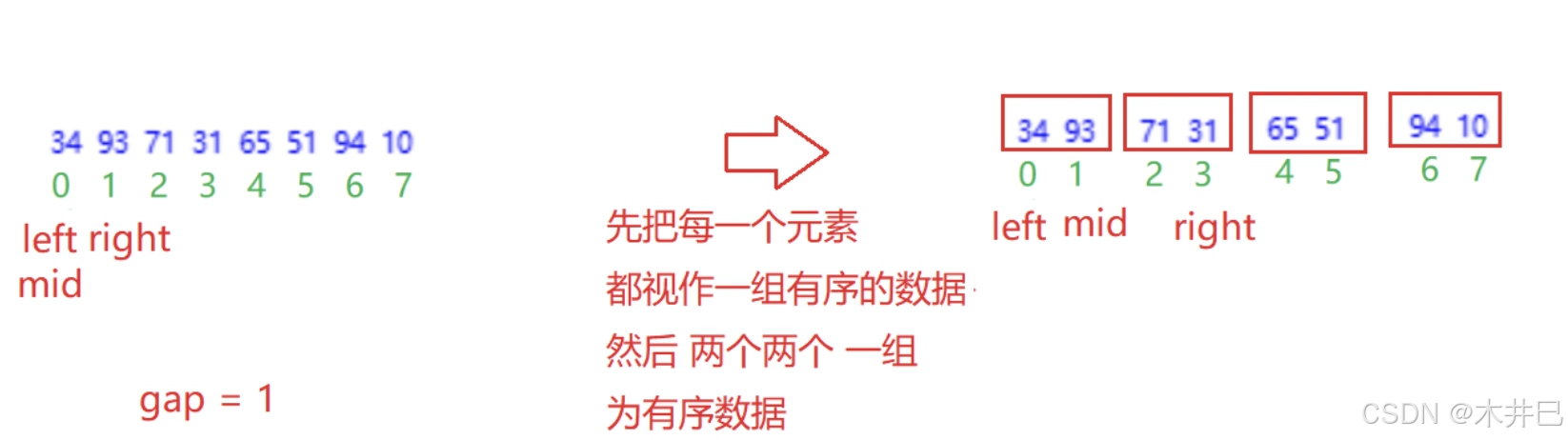 // 非递归归并排序