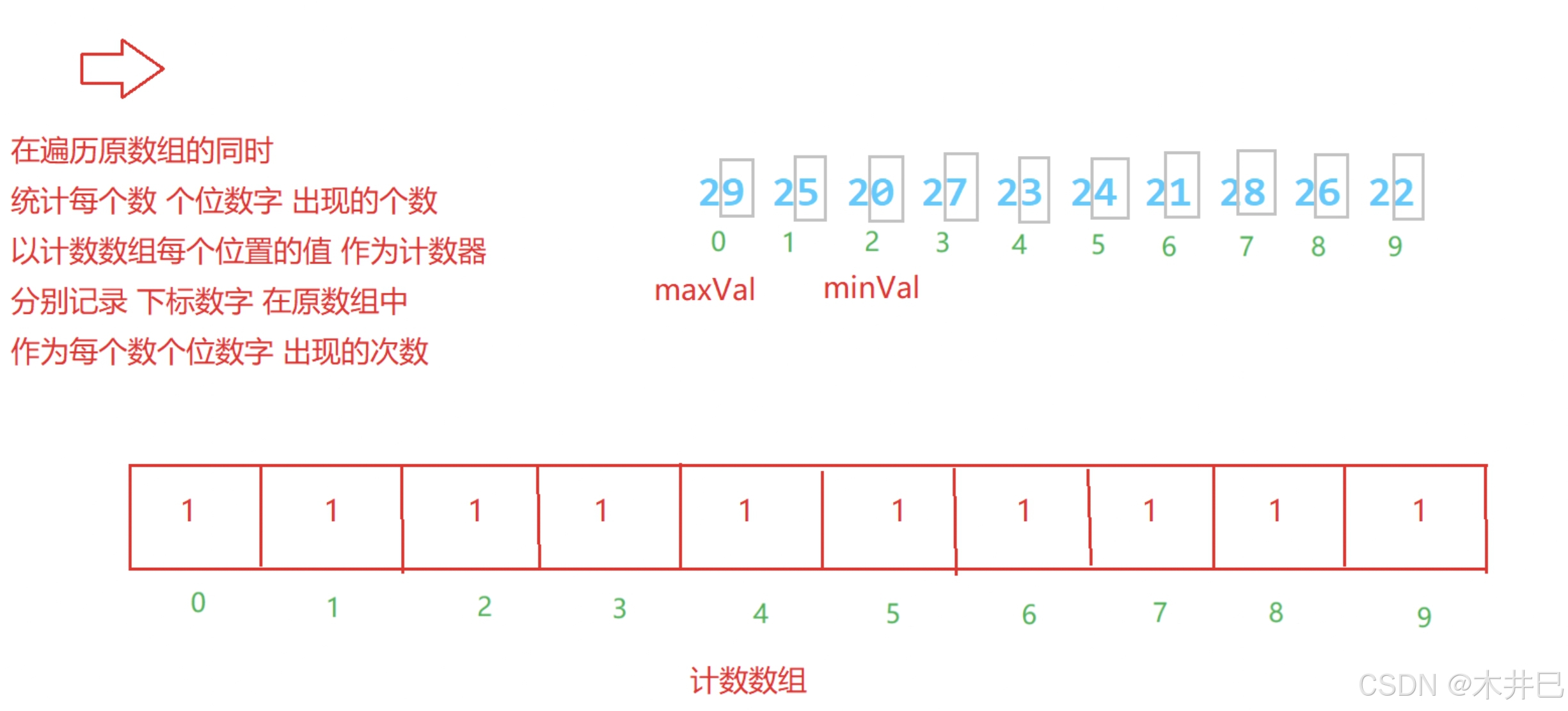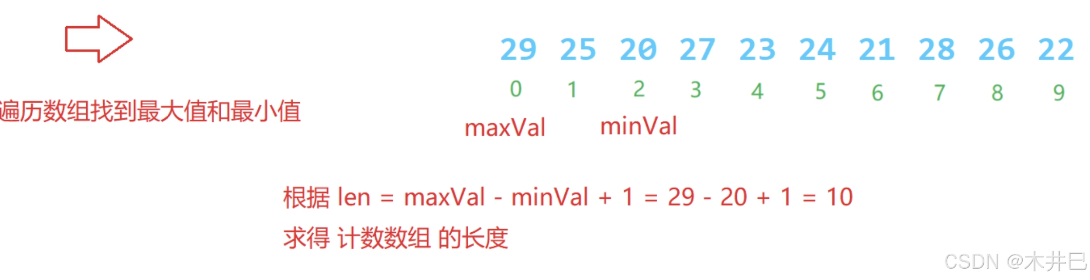 // 1.找数据中的最大值和最小值,然后确定 计数数组 的长度