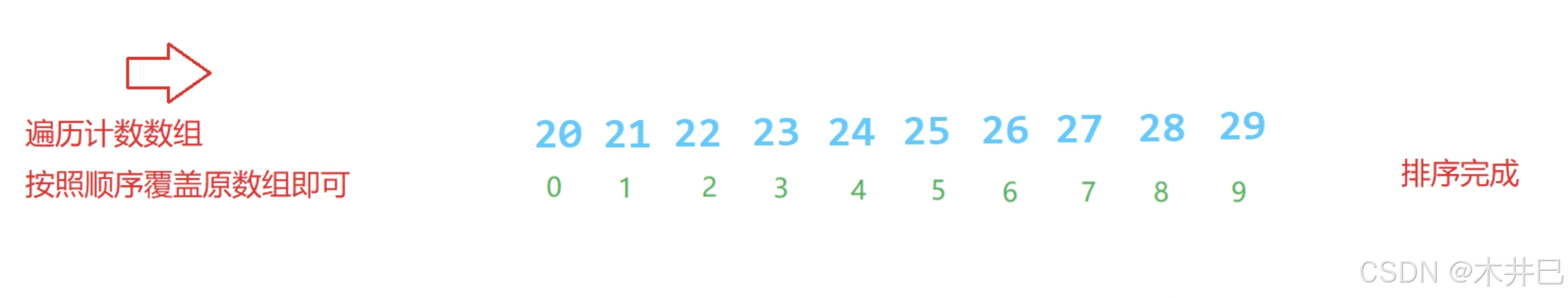// 3.遍历计数数组,按顺序覆盖原数组