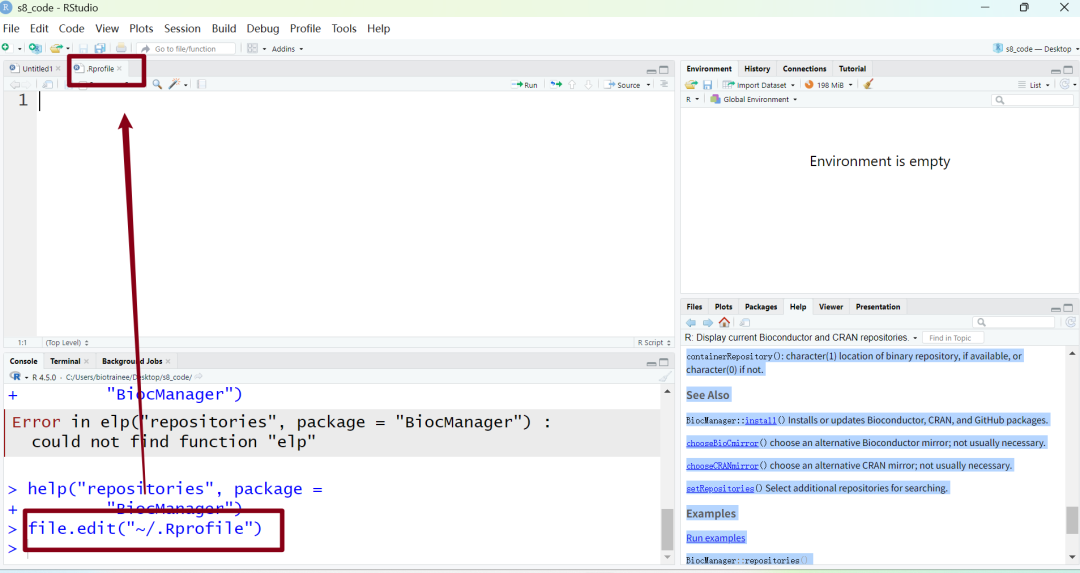 不要在这个配置文件里乱加东西,有的同学不知道,以为这是普通脚本,一堆乱七八糟代码填进去,以后每次打开Rstudio都会报错,重启重装软件都没有用,只有删除这个文件或者删除里面的多余代码才会恢复。