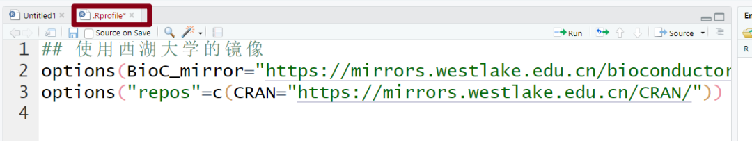 这是一个对新手来说最安全的方法,只是它是一次性的设置,每次重新打开一个Rstudio窗口时,就需要重新运行这两句代码才能使设置生效。