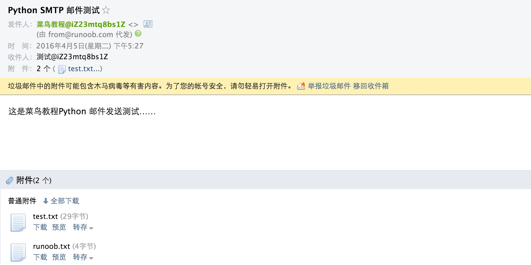 subject = 'Python SMTP 邮件测试'