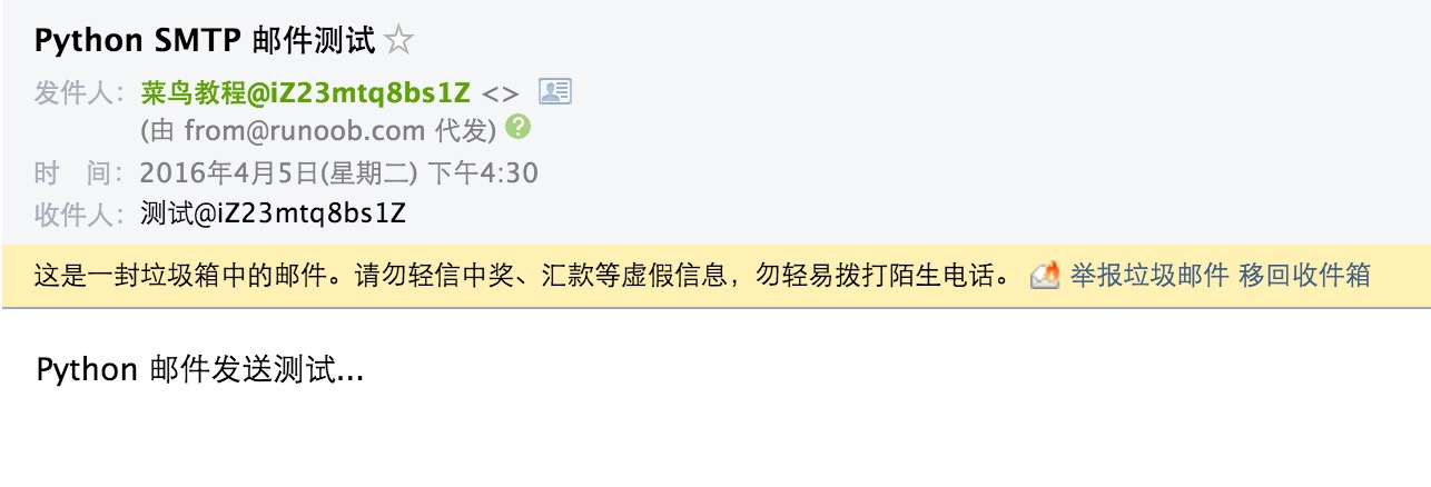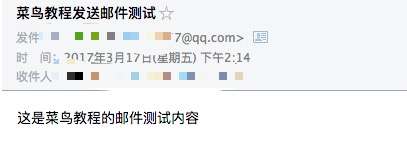 msg['Subject']="菜鸟教程发送邮件测试" # 邮件的主题,也可以说是标题
