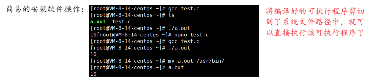 gcc test.c就是将test.c文件进行编译,并生成名为a.out的可执行程序