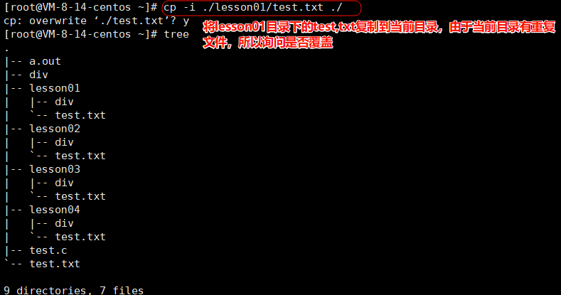 • -i:复制前进行确认,如果目标文件已存在,询问是否覆盖。