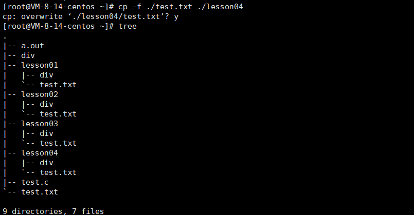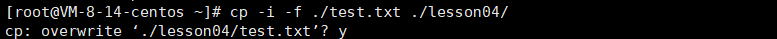 按道理来讲我用了-f选项不应该不会询问是否覆盖了吗?为啥这依旧询问了,原因如下: