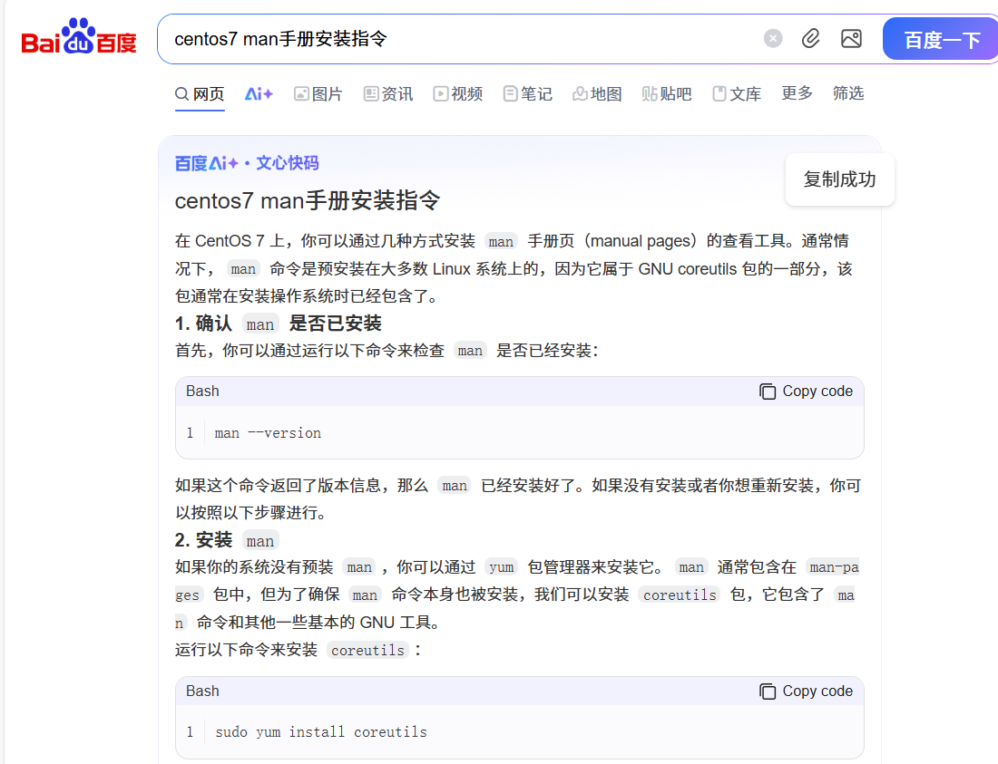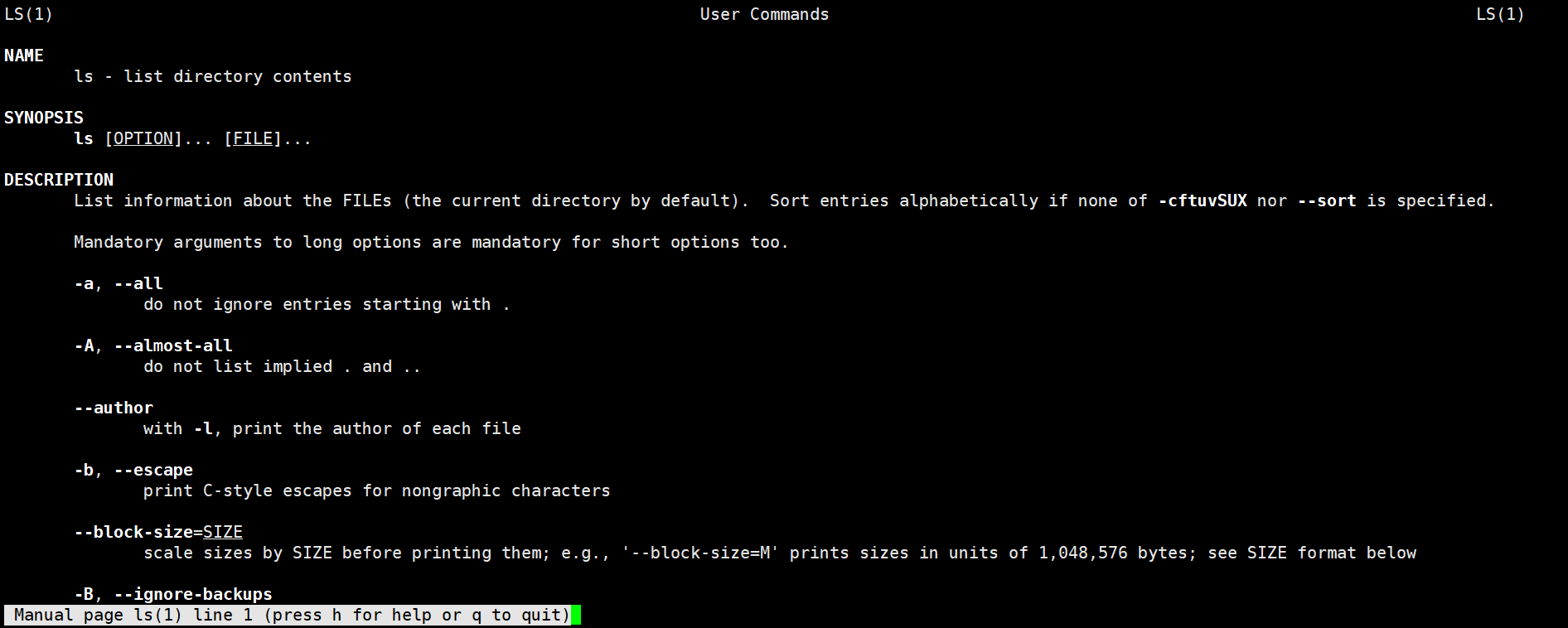 语法: man [选项] 命令 功能: man 命令用于查看 Linux 命令的联机帮助手册,当记不清命令参数或想了解命令详细用法时,可通过它获取帮助 常用选项: