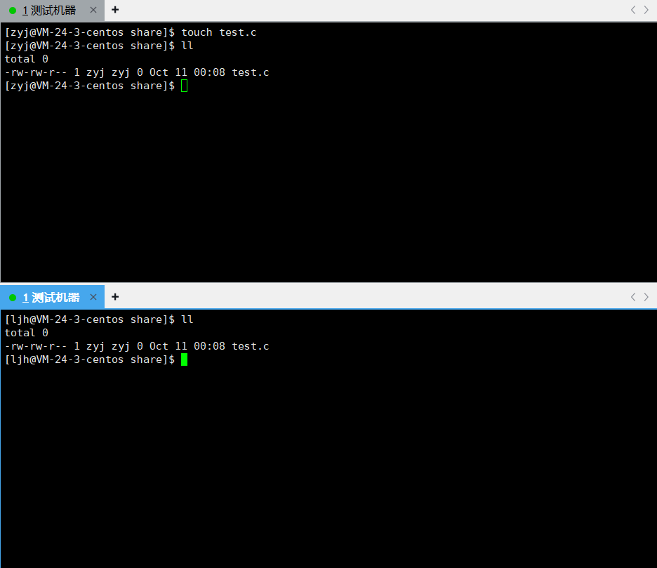 我用第一个用户创建了一个文件,第二个用户也能看到