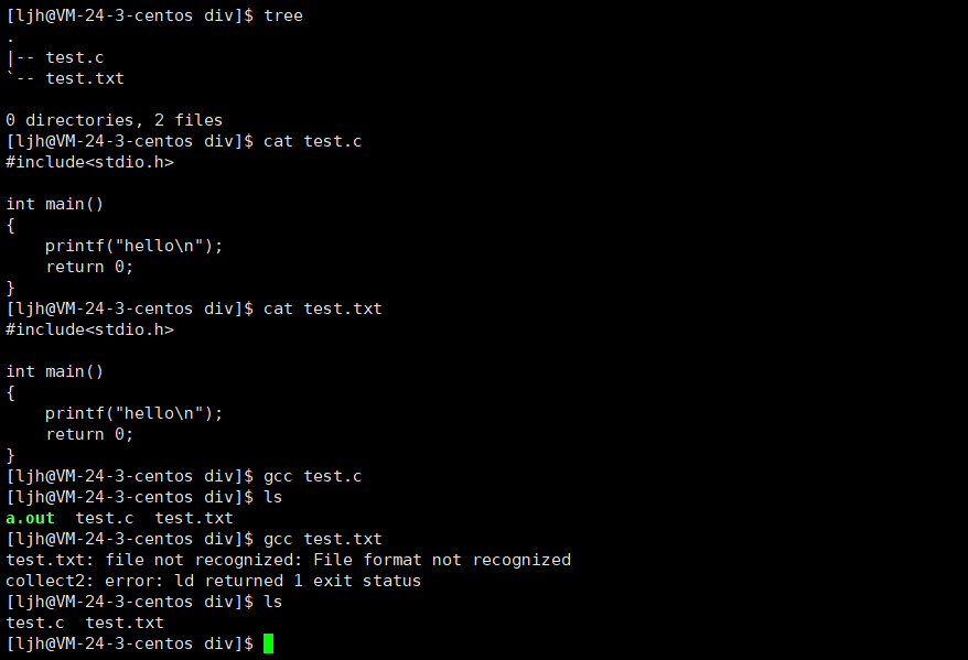 在Linux系统下,文件名后缀没有直接意义,当然,不代表不用,有可能Linux下的别的软件需要用到文件名后缀,就比如gcc这个编译器: