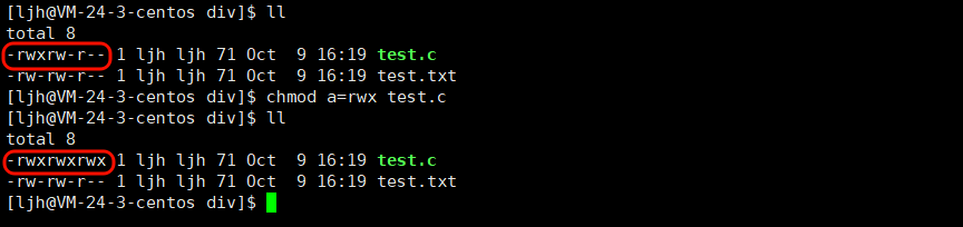 chmod a=rwx test.c:将 test.c 文件的所有者、所属组、其他用户权限都设为可读、可写、可执行。
