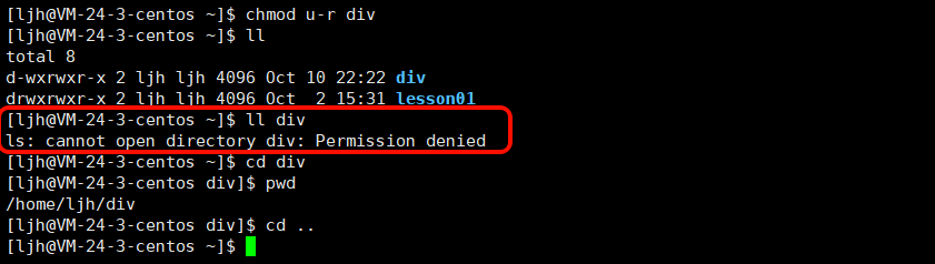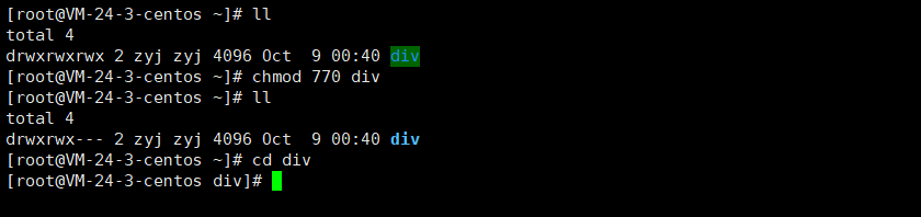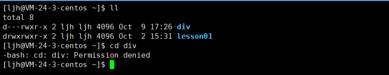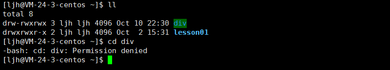 对于div目录root属于其他人,其他人没任何权限,但是root可以进去div目录,代表他无视了执行权限的约束