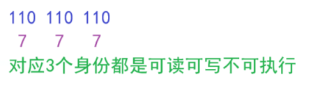 二进制中三位分别对应读、写、执行权限,1 代表有对应权限(真)、0 代表无对应权限(假);八进制中每一位分别对应所有者、所属组、其他用户这三个身份。