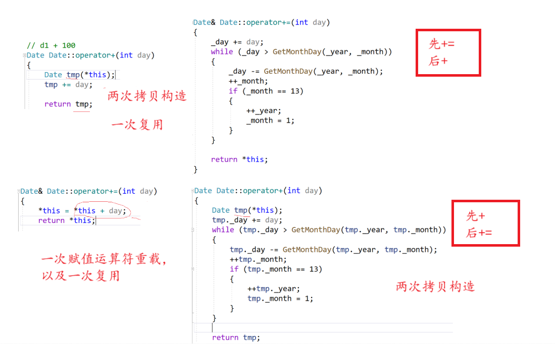 }直接复用日期加减天数操作,注意一点,不能返回局部变量的引用
