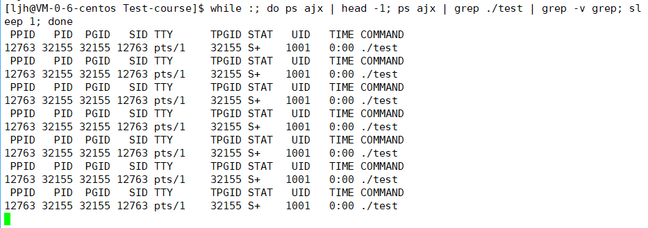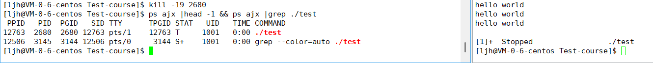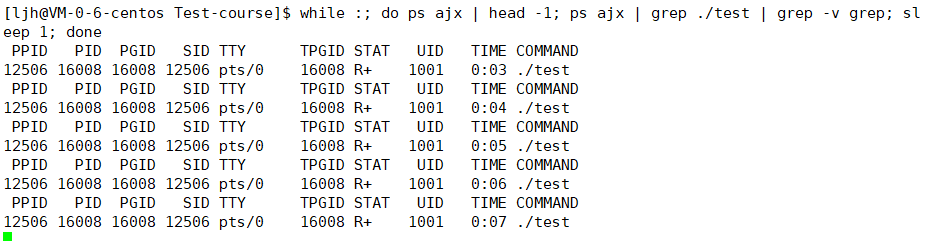 sleep定时器到期),这个状态下不会占用 CPU 资源。Ctrl+C发送中断信号)都会直接作用于它,能直接中断进程;Ctrl+Z将其暂停并切换到后台(切换后进程状态会变成S且不带+),才能在同一个终端里执行其他命令。Ctrl+C)不会影响它,无法直接用Ctrl+C中断;fg命令将其切回前台,或用kill命令发送信号中断;&(例如./test &),让进程一开始就在后台运行。【测试2】: