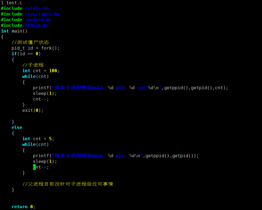 僵尸进程的定义 处于僵尸状态(Z 状态)的子进程,即子进程已退出,但父进程未调用