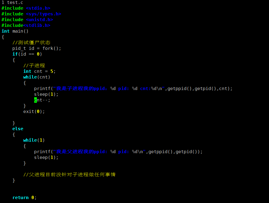 wait()/waitpid()),子进程会持续处于僵尸态(Z 状态),其对应的task_struct结构体(进程控制块)无法被内核释放,仅保留退出状态等必要信息,直到父进程处理或自身终止后由 1 号进程接管清理。