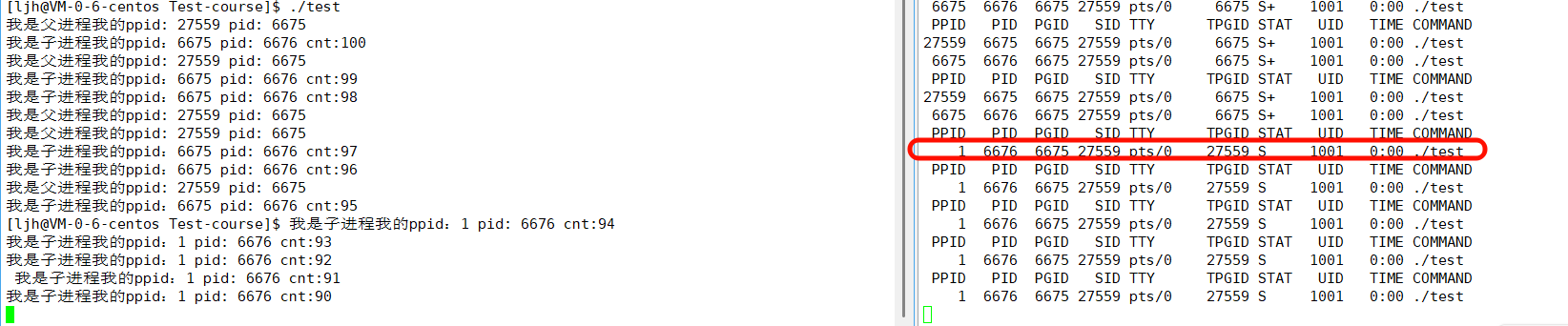 从图中可以看出父进程结束后,子进程的PPID就变成1了,这也刚好验证了我们上面说的没问题