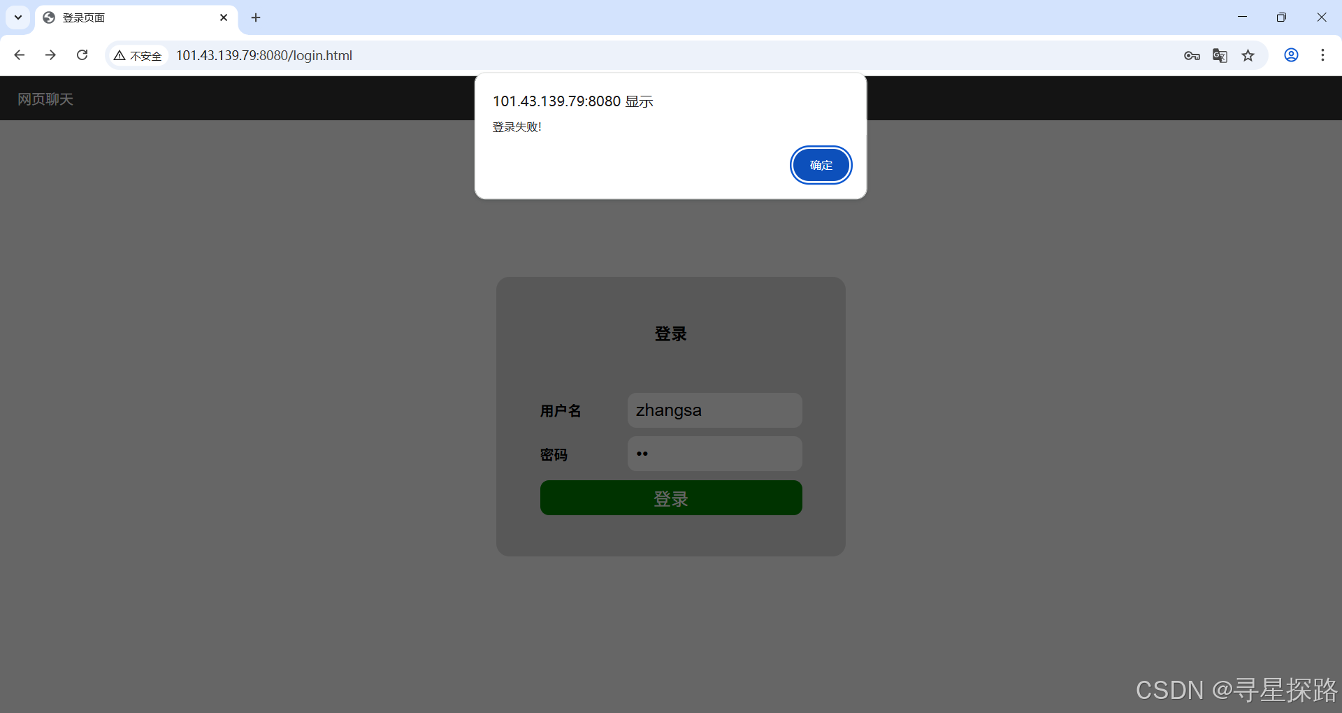 2)输入错误的账号和密码