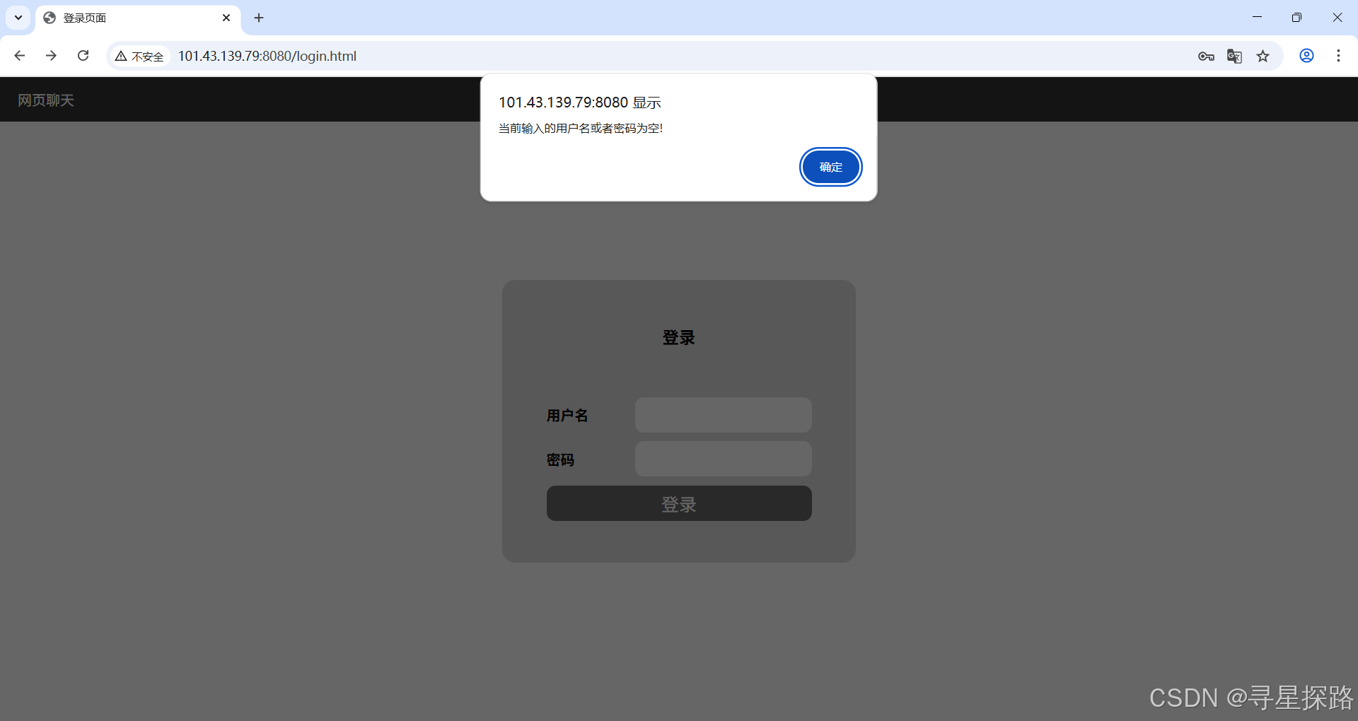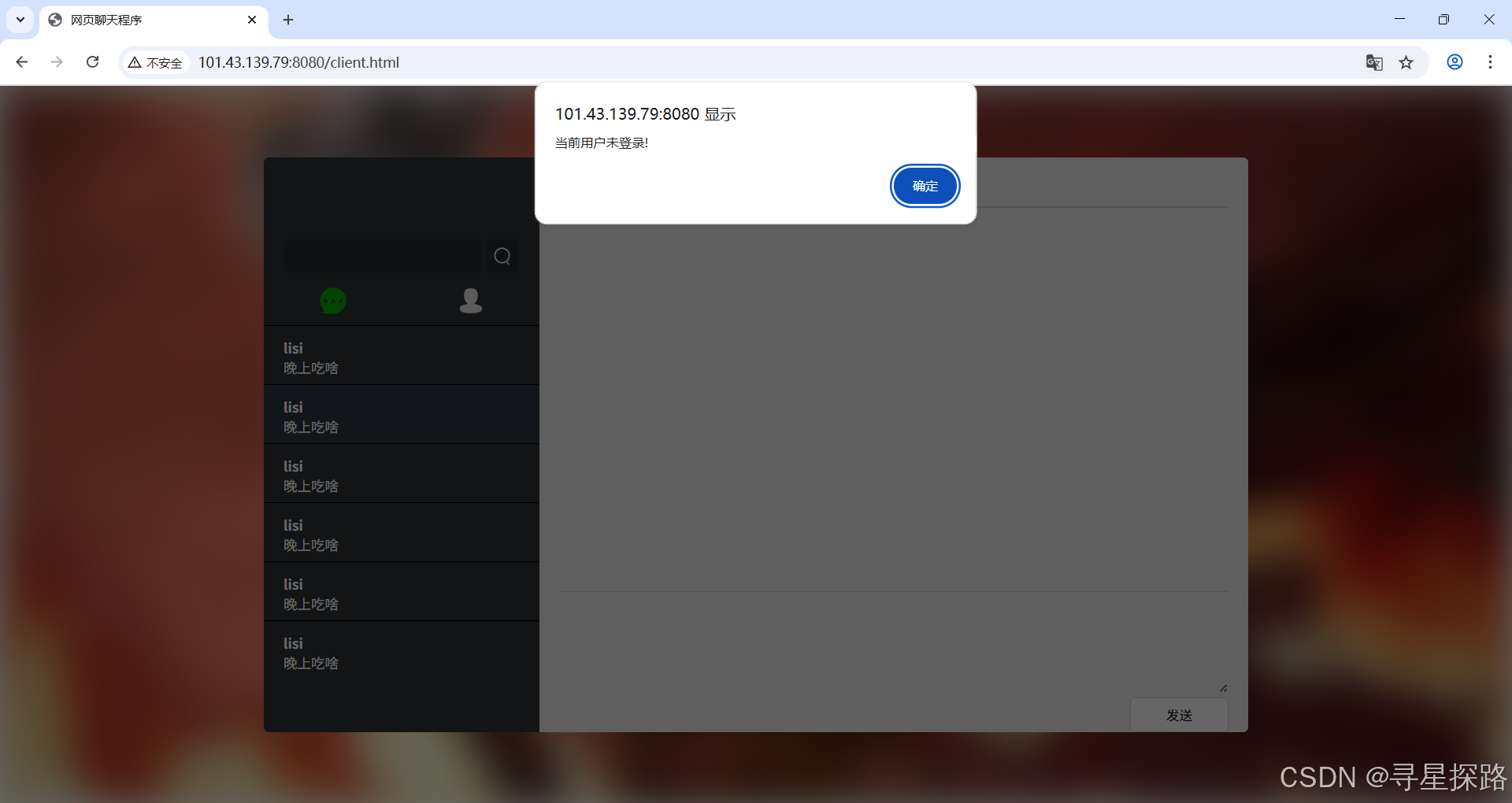 测试结果符合预期,未登录的用户无法通过聊天界面链接直接进入,弹窗提示用户未登录,点击确定跳回登录页面。