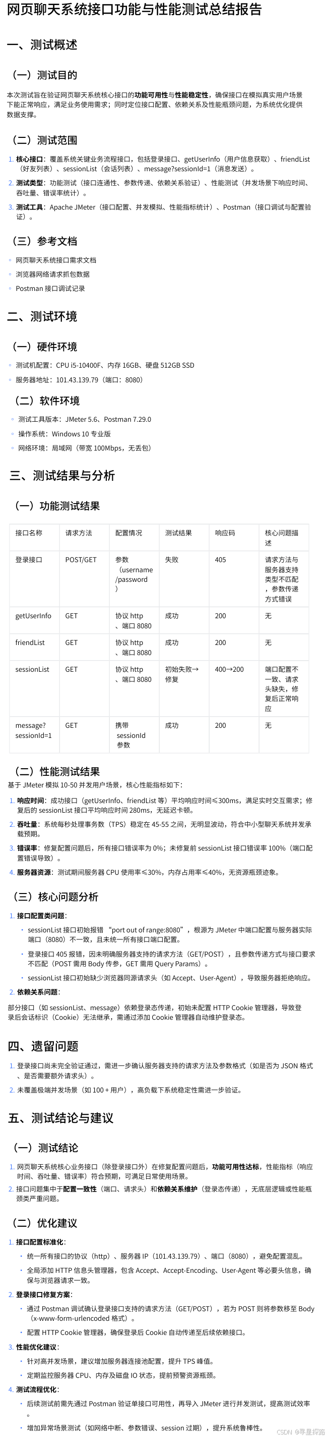 1)在功能测试阶段,覆盖了登录功能、聊天对话功能、使用通讯录跳转好友等功能其中已发现的问题均已在bug描述中指出。