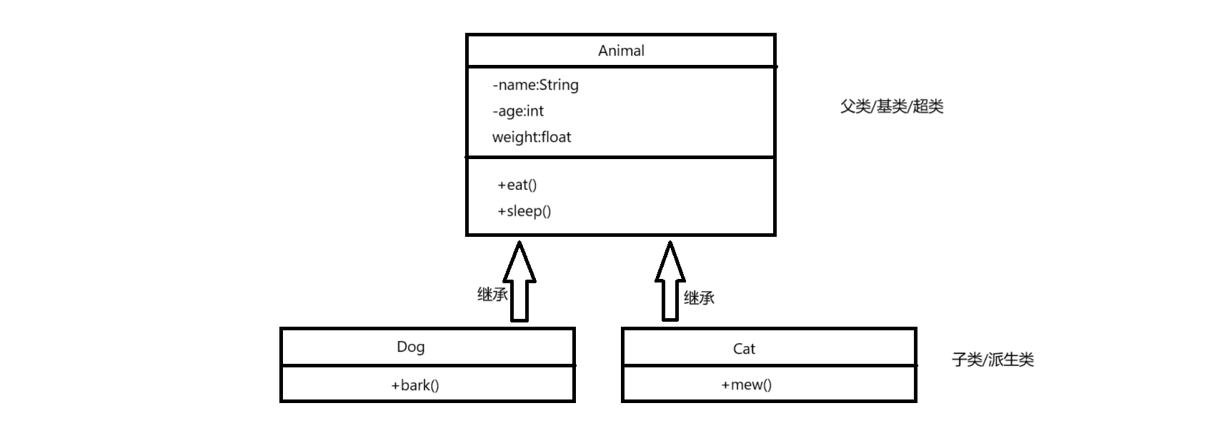 继承表示对象之间是is-a的关系,比如:狗是动物,猫是动物
