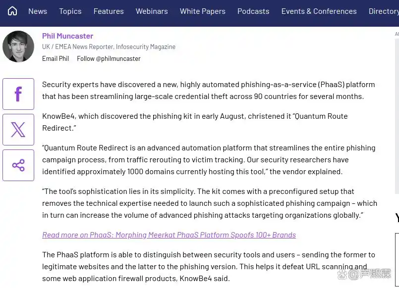 关键词:Quantum Route Redirect;凭证钓鱼;PhaaS;多跳重定向;OAuth滥用;CASB;浏览器隔离;异常登录检测