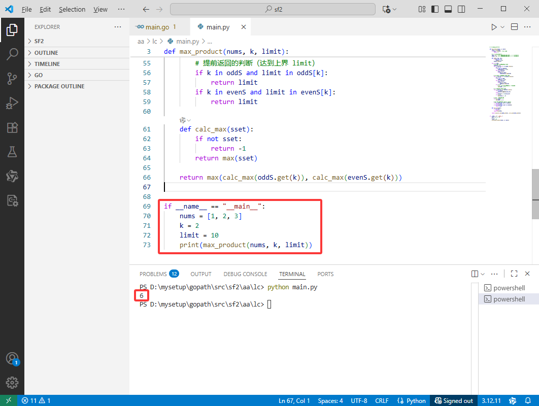 如果 oddS[k] 或 evenS[k] 的乘积集合中有 limit,说明已经找到乘积等于 limit 的解,可以直接返回 limit(因为这是可能的最大值)。