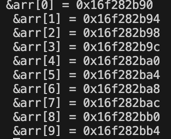 printf("&arr[%d] = %p\n ", i, &arr[i]);