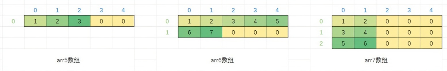 int arr5[][5] = {1,2,3};2 int arr6[][5] = {1,2,3,4,5,6,7};