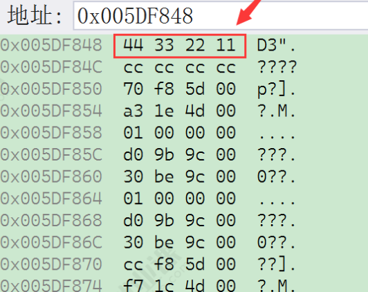 }调试的时候,我们可以看到在a中的 0x11223344 这个数字是按照字节为单位,倒着存储的。这是为什么呢?