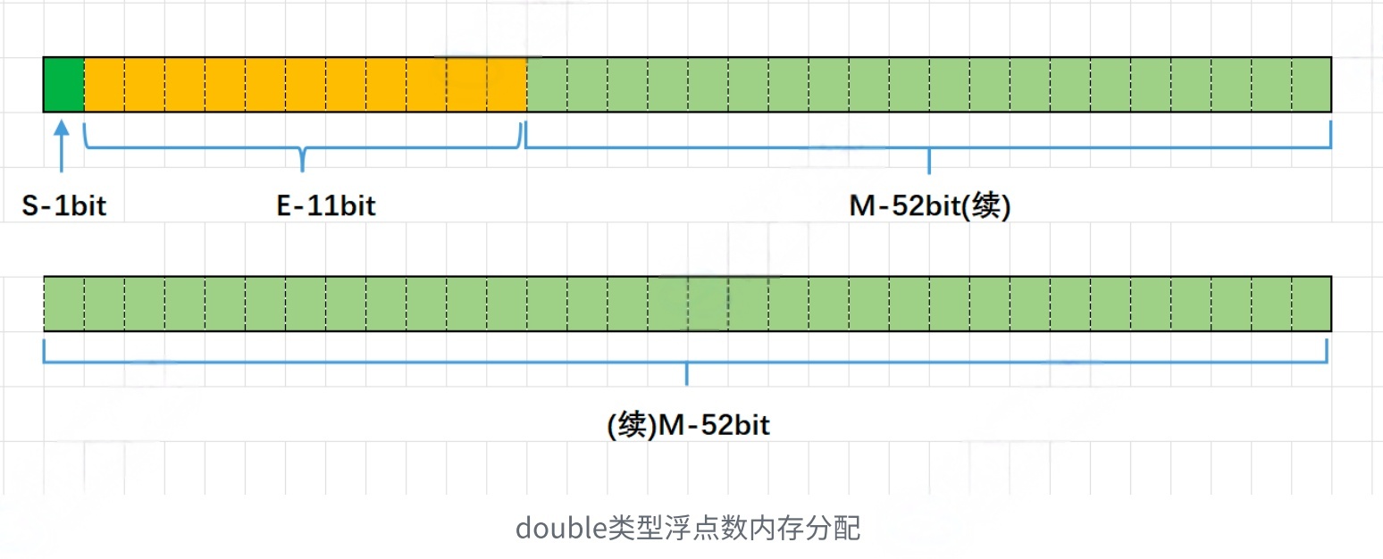2️⃣对于64位的浮点数(double),最⾼的1位存储符号位S,接着的11位存储指数E,剩下的52位存储有效数字M