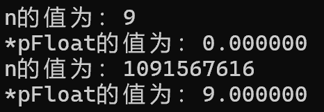 上⾯的代码中,n 和 *pFloat 在内存中明明是同⼀个数,为什么浮点数和整数的解读结果会差别这