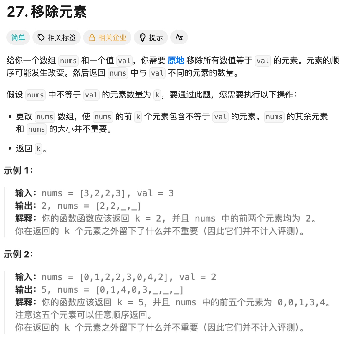 if (nums[i] != val) {