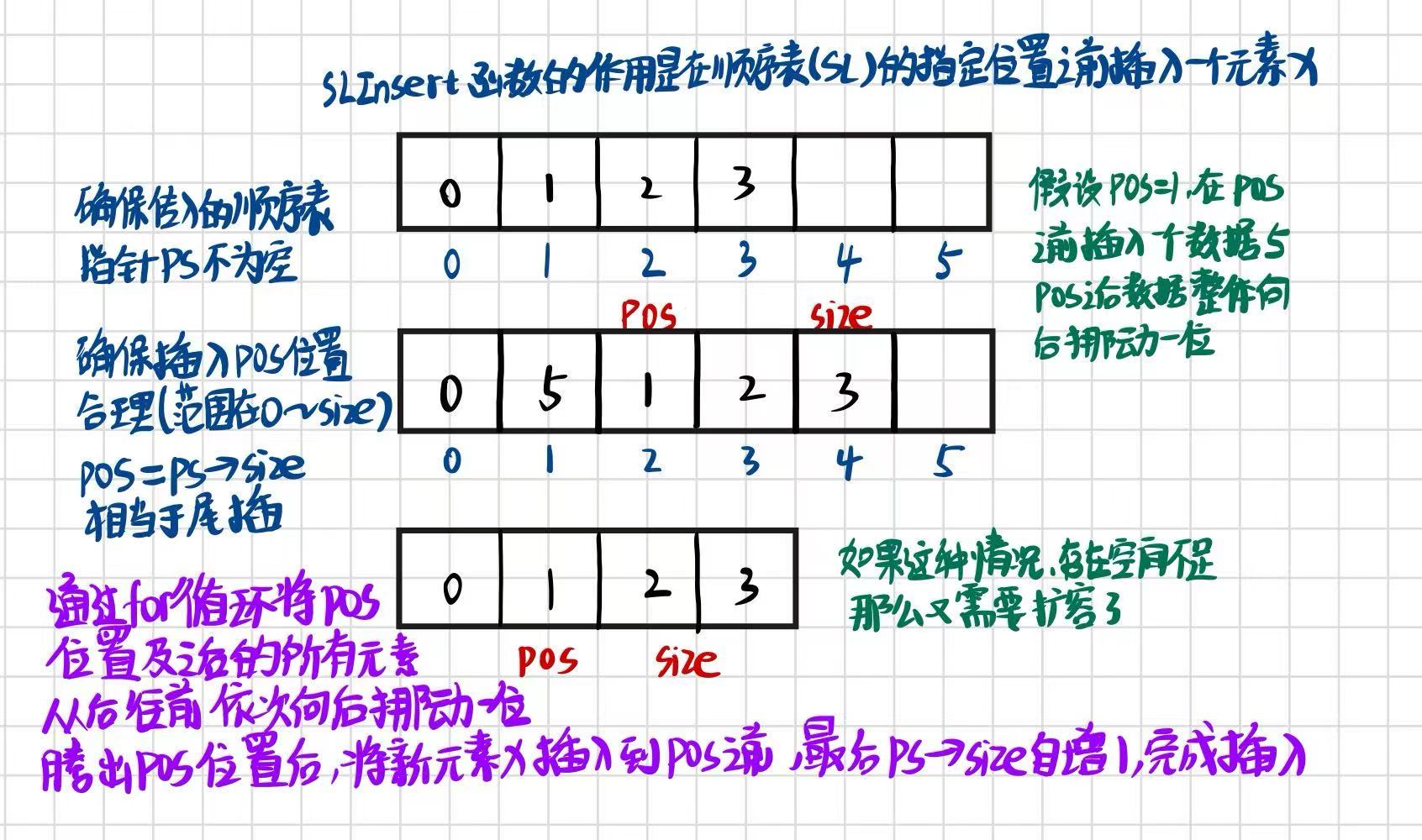 void SLInsert(SL* ps, int pos, SLDataType x)
