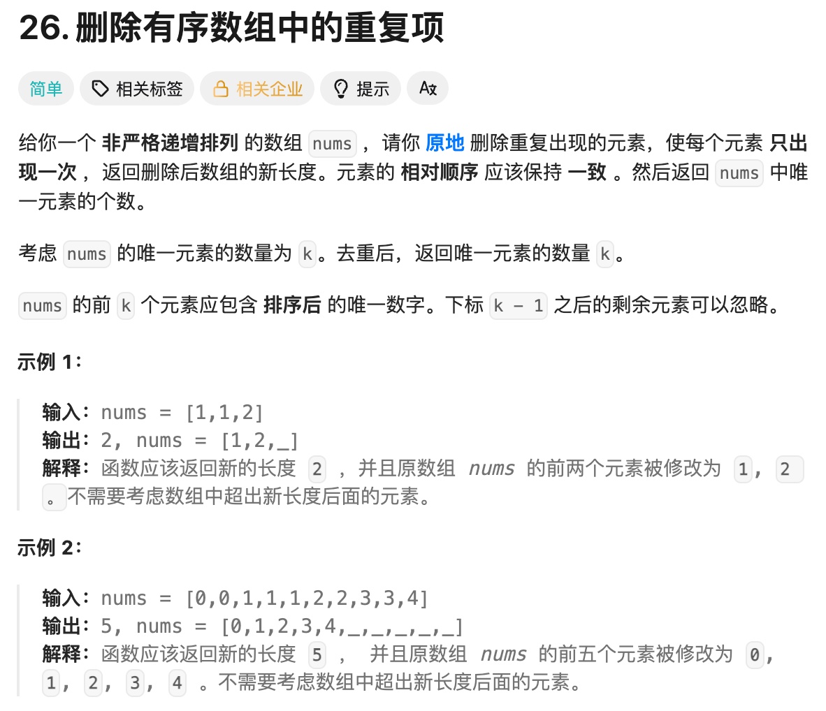 int removeDuplicates(int* nums, int numsSize) {