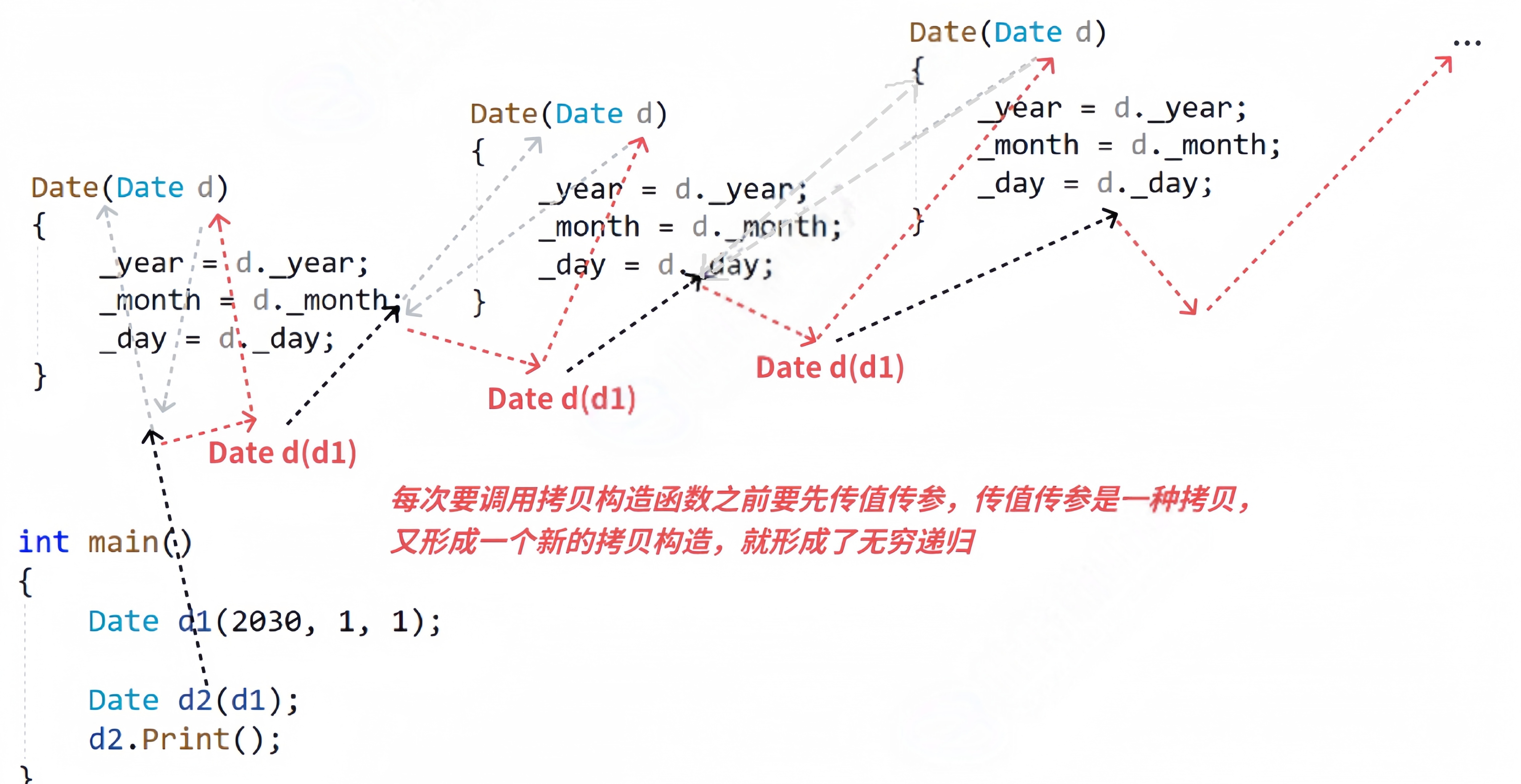 Date d2(2025, 1, 1); // 调⽤带参的构造函数