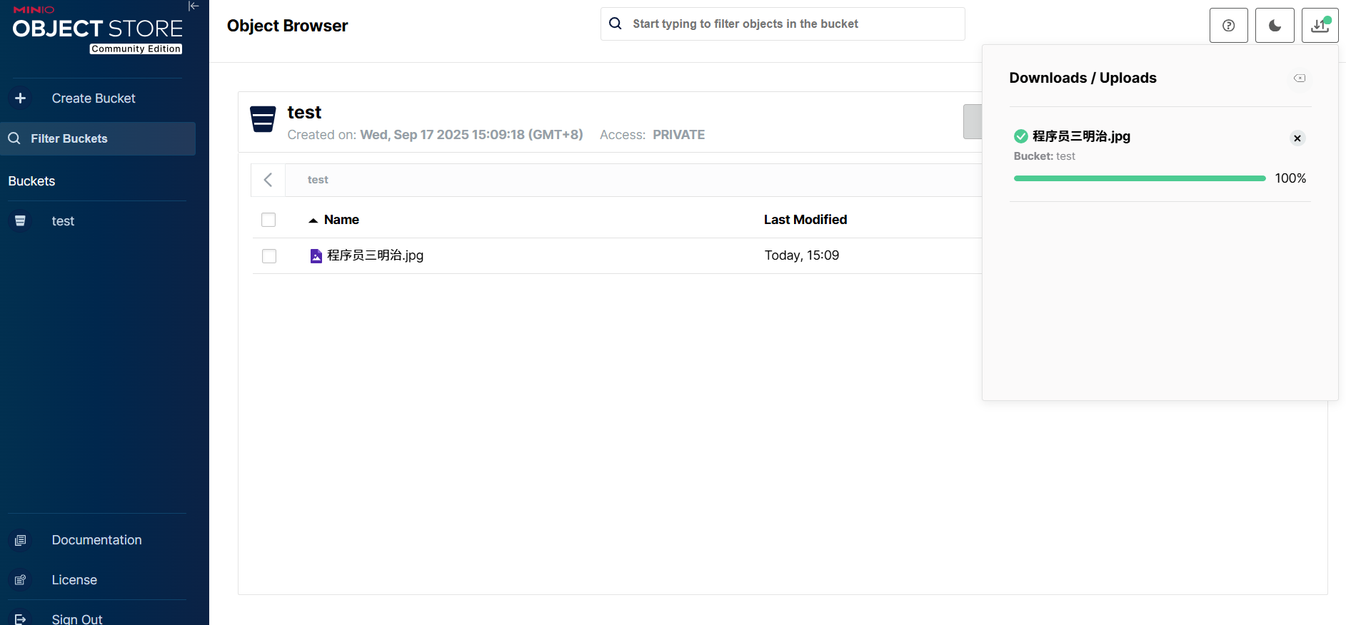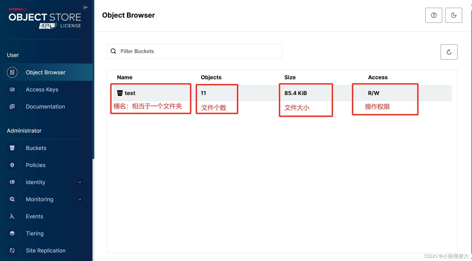 点击桶名称,可以看到该桶内的所有文件