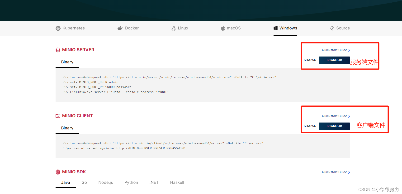 下载地址:https://www.minio.org.cn/download.shtml#/windows