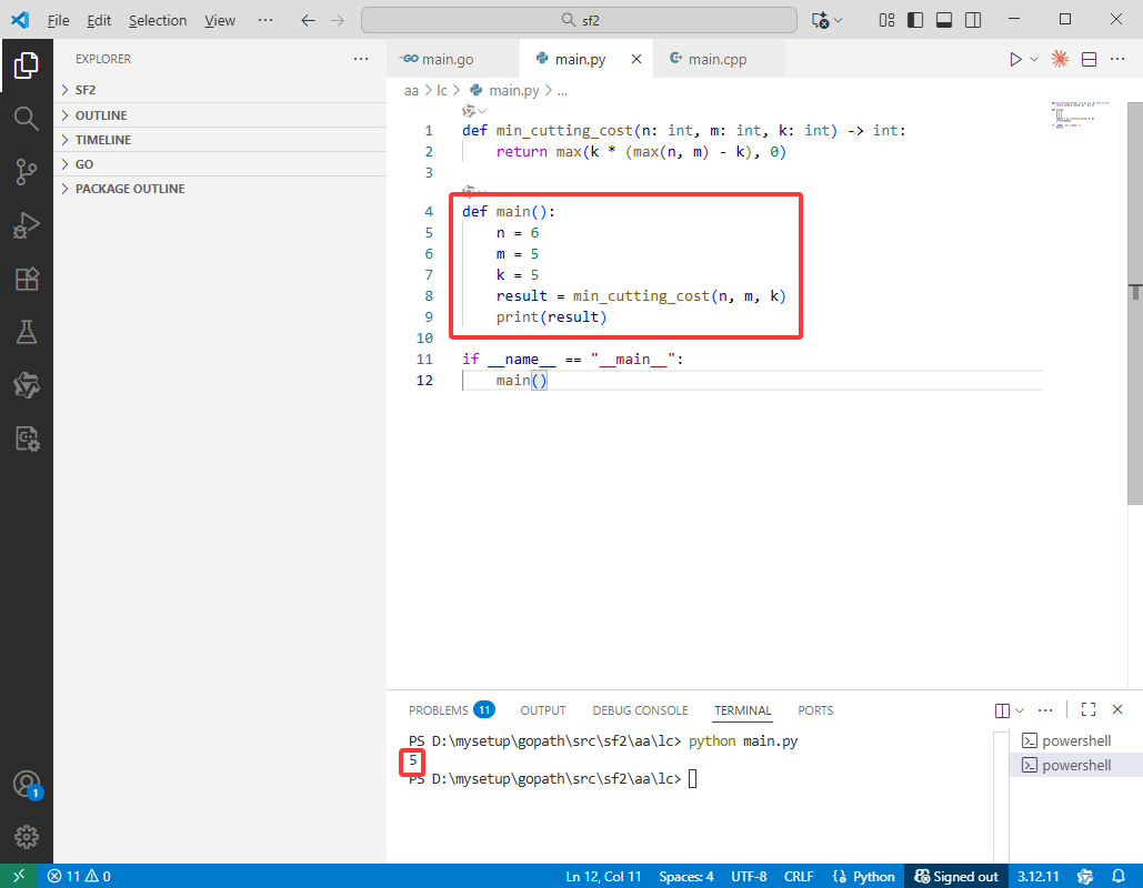 long long result = minCuttingCost(n, m, k);