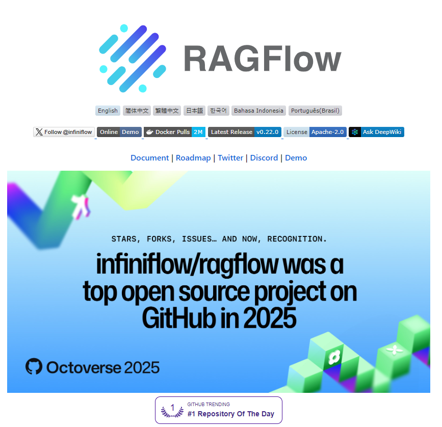 2025年11月12日,RAGFlow 正式发布 v0.22.0 版本。本次更新带来了大量功能增强、架构优化及重要修复,涵盖数据集管理、智能代理、解析管线、管理界面及模型支持等方面。同时,本版本在镜像发布策略和功能上也进行了重要调整。以下为详细更新内容: