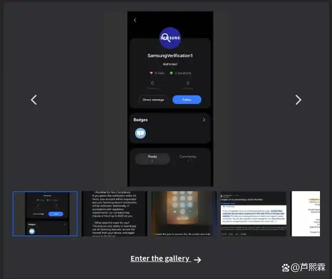 在 Samsung Members 中,私信或评论未明确标注发送者身份类型(官方账号 vs 普通用户)。即使有“Verified”徽章,攻击者亦可通过仿冒名称(如 “Samsung_Support_Official”)混淆视听。系统未强制要求高风险操作(如包含链接的消息)显示完整发件人标识与安全提示。