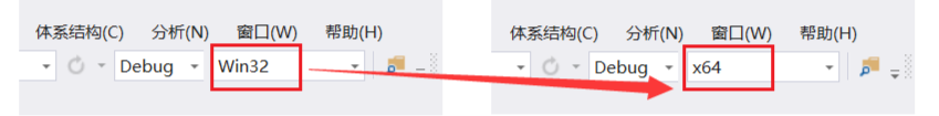 }在32位的平台下,内存大小为4G,但是堆只占了其中的2G左右,所以我们不可能在32位的平台下,一次性在堆上申请4G的内存。这时我们可以将编译器上的win32改为x64,即64位平台,这样我们便可以一次性在堆上申请4G的内存了。