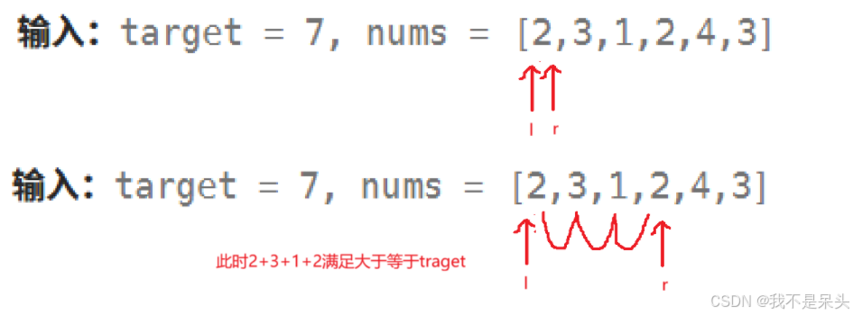 left指针++,并且sum -= nums[right++],直到不满足sum大于等于traget这个结果。在这个过程中
