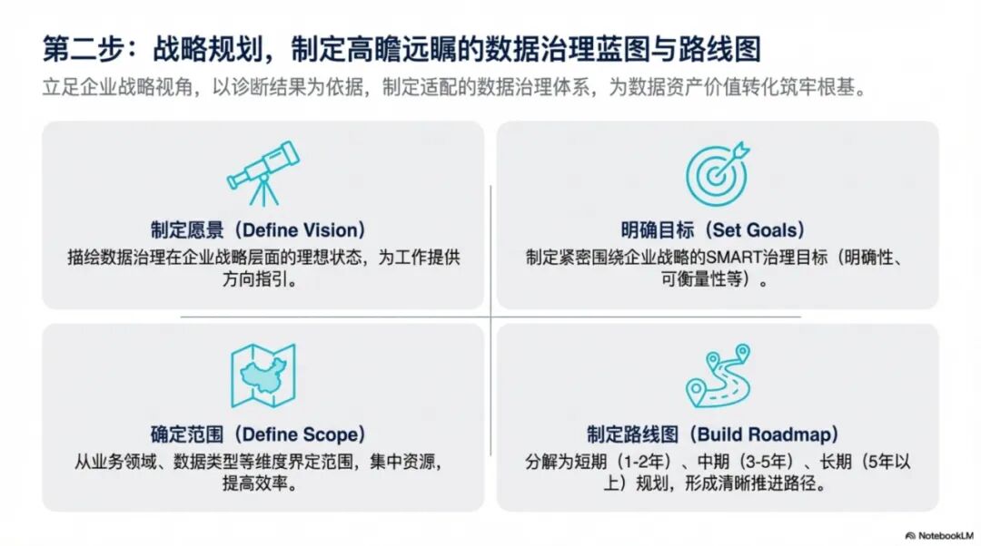 战略层:明确数据治理的愿景、目标和实施路线图