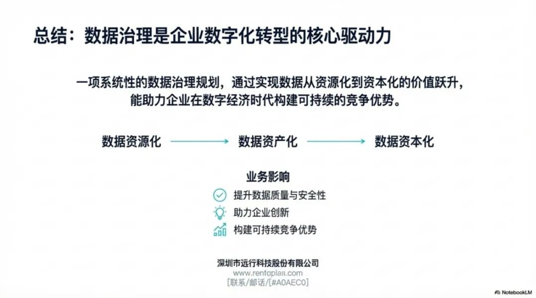 数据治理是一项系统工程、长期工程,需要战略规划、组织保障、技术支撑、文化培育多方面协同推进。企业应从自身实际出发,选择合适的切入点,分阶段推进,持续迭代优化。只有这样,才能真正将数据从成本项转变为资产项,从而在数字经济时代构建可持续的竞争优势。数据治理的终极目标,不是为了治理而治理,而是让数据更好地服务业务、创造价值,助力企业实现高质量发展。