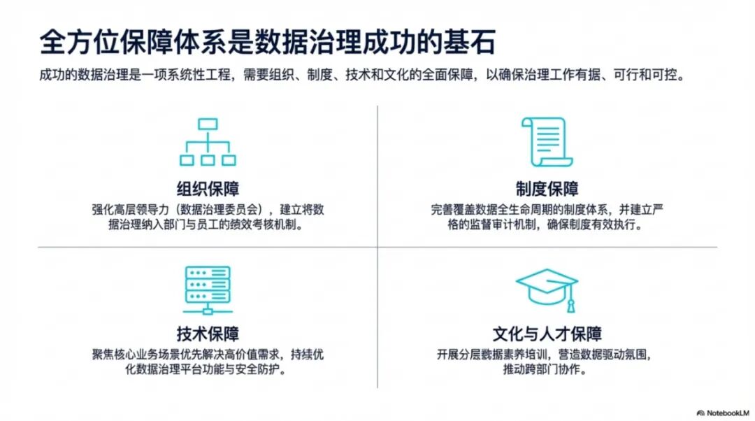数据治理必须"一把手工程"。高层领导要真正重视,投入足够资源,协调跨部门问题。同时建立绩效考核机制,将数据标准执行率、数据质量合格率等指标纳入考核,确保治理工作落到实处。