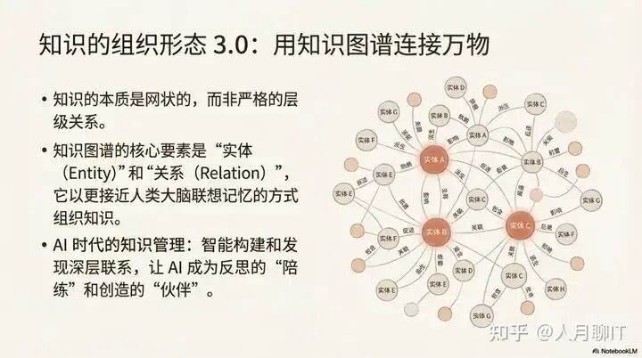 • 知识库:这是对原始资料进行系统化处理的阶段。通过分类、归纳,我们将零散的信息点连接起来,形成结构化的知识体系。此时,我们拥有了一张关于某个领域的“地图”,但这些知识仍是外部的、未经亲身验证的。