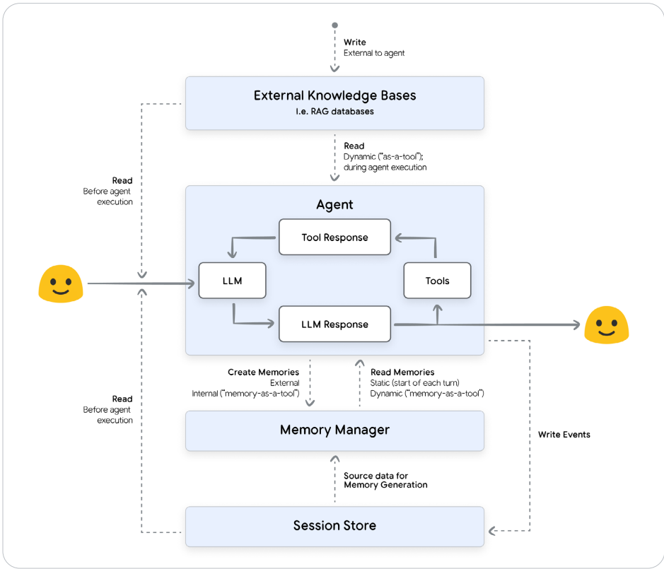 - 内存:Agent的“个人助理”,存储动态用户特定信息(如偏好、历史),高度隔离。